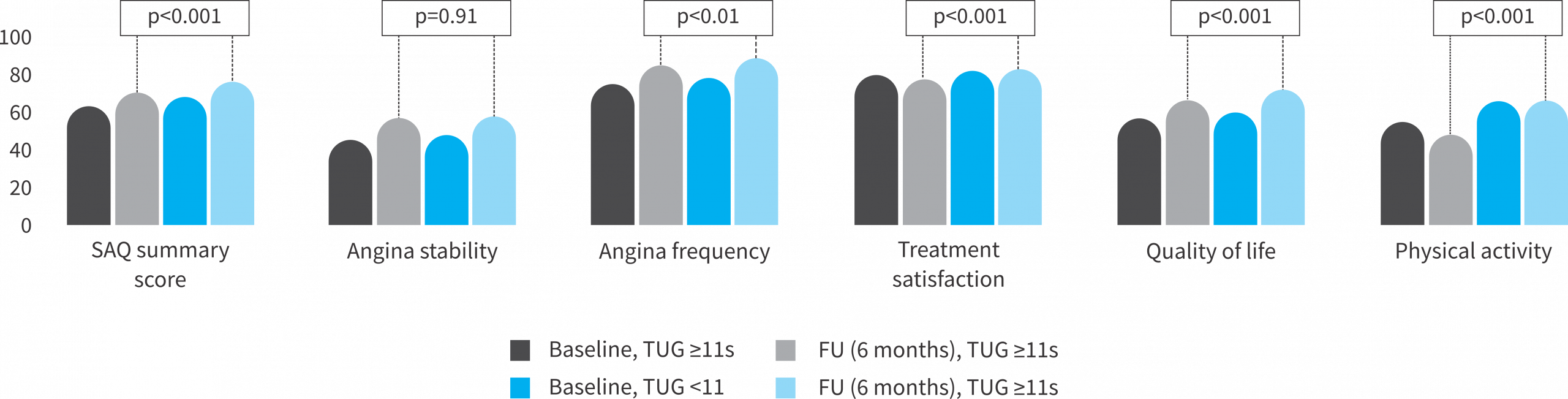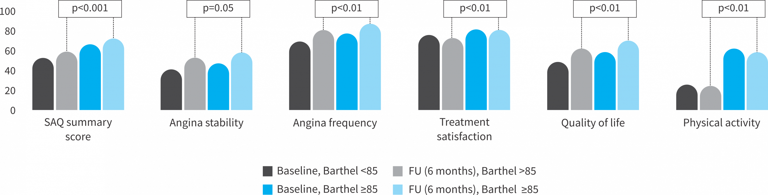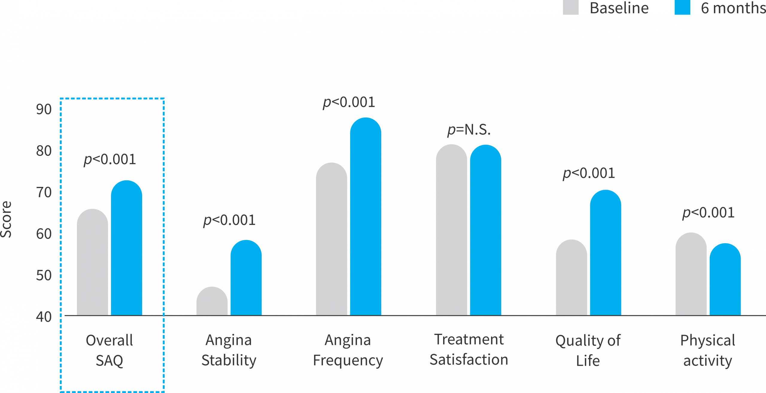 Overall improvement in Patient Reported Outcome Measures (PROMs) at follow-up assessed by the Seattle Angina Questionaire